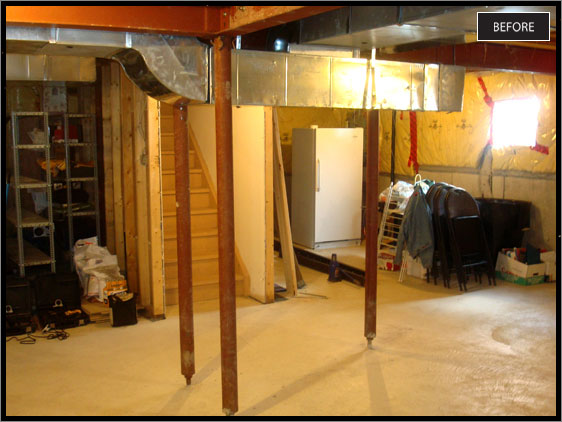 The poles in this home's basement conflicted with the desired floor plan, one pole being about