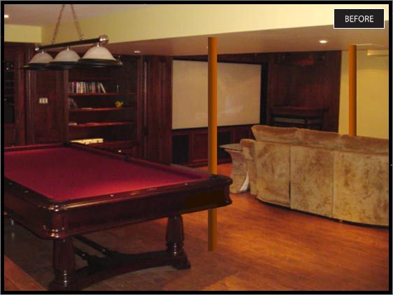 Steel poles in way of pool table and home theatre.