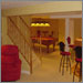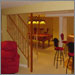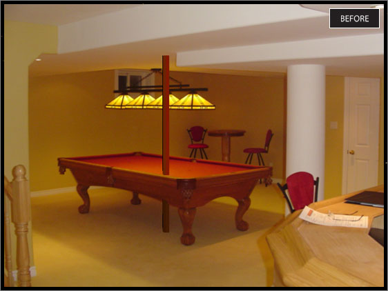 Poles in way of pool table and in high traffic path near bottom of stairs.