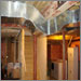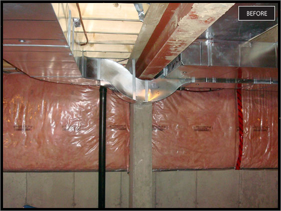 This duct was split up into three large diameter round pipes, passed over the beam and then
