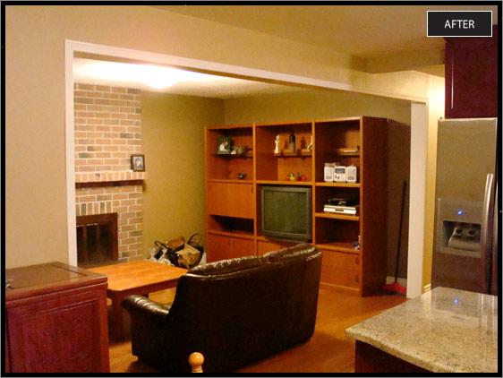 Originally, the kitchen was separated from the family room with a partition wall with two small